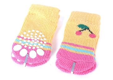Носочки для собак "Вишенки". Цвет желтый. Размер S."