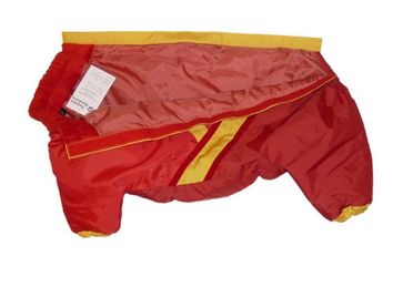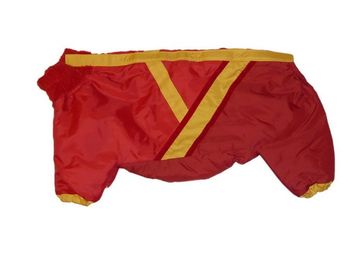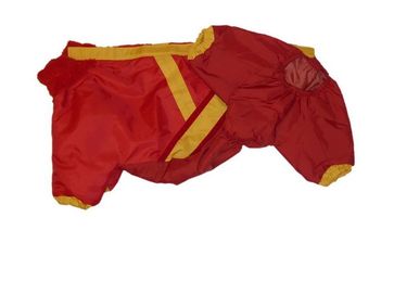 Стильный и яркий комбинезон, предназначенный для носки в осенне-весеннее и зимнее время. Сделан из непроницаемой ветром плащевки на синтепоне. На спине имеет контактную ленту, по бокам и на краях отделку из декоративной тесьмы