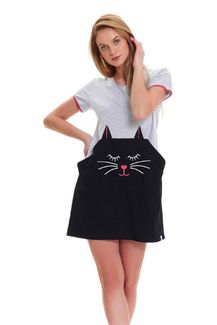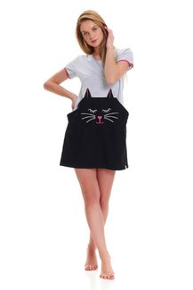 Милая сорочка с котом (р. S, черный с серым)