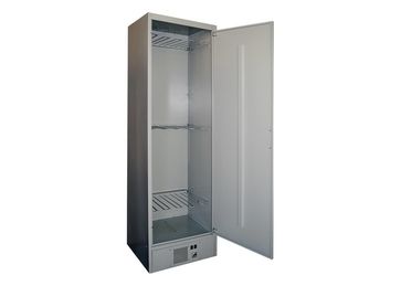 Магнитная защелка, три съемные полки. Порошковая окраска RAL 7038. Может поставляться как в собранном, так и в разобранном виде. Тепловентилятор расположен в нижней части шкафа, закрыт защитным кожухом. В днище шкафа предусмотрен слив для излишков воды. В крыше шкафа имеется перфорированное вентиляционное отверстие, с монтажными отверстиями для установки фланца (возможность подсоединения шкафа к вентиляционной системе посредством фланца). None Есть доставка.