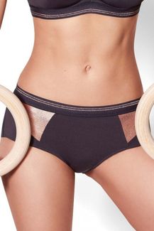Спортивные шорты из мягкого и удобного материала. Рафинированные вставки с эффектом металлического блеска, плоские швы и широкий удобный пояс. Ластовица: 100% хлопок. INITIALE - первая коллекция спортивного белья в линейке IN-PULSE, сочетающая в себе спортивный стиль и современность. Непревзойденное сочетание качества и комфорта, стильной элегантности и женственности. None
