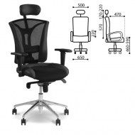 Кресло офисное Pilot R HR", экокожа ткань, хром, черное, с тканевыми вставками"