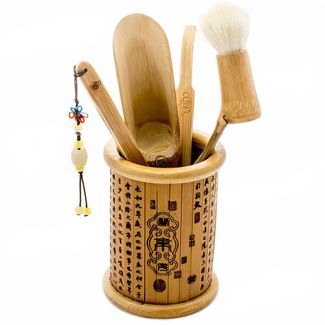 Инструменты для чайной церемонии из бамбука. В набор входит ложка для перекладывания заварки, игла для прочистки носика чайника, щипцы, чтобы доставать из чайника заварку, кисточка (ча би) - с её помощью ухаживают за чайником, убирая по... None