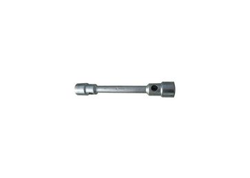 Ключ баллонный двусторонний торцевой изготавливается из углеродистой стали. Твердость материала рабочих частей ключа 41 HRс, что соответствует требованиям ГОСТа. Защитное покрытие выполнено из цинка. Ключ имеет 2 торцевые головки с 6-гранным зевом. Благодаря утолщенному диаметру прута (26 мм), ключ обладает более высокими прочностными характеристиками и длительным сроком службы. Применяется для установки и демонтажа колес грузовых а м и автобусов. None