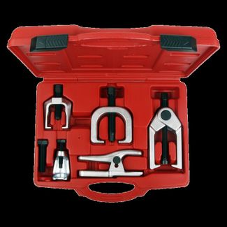 Набор сьемников шаровых опор и рулевых наконечников. Состав: Съемник рулевой сошки для легковых автомобилей Съемник шаровых опор Съемник шарнирных соединений-2 шт Съемник рулевых тяг AmPro (Тайвань) вес 5,32кг None