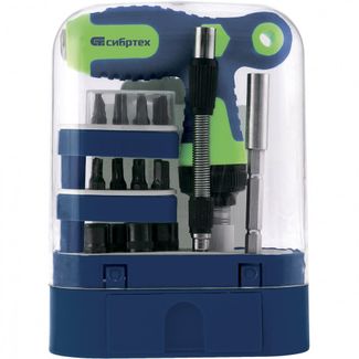 - Отвертка Т-образная реверсивная с набором бит, торцевых головок, 33 предм.,CrV Сибртех в каталоге Офтальмологические инструменты в Москве;