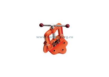 Отличаются фиксацией зажимаемого материала сверху вниз. Приспособление надежно закрепляется на поверхности с помощью болтов. Тиски применяются для фиксации труб. None