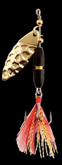 Вращающаяся блесна с одним лепестком. Вес - 17г, цвет лепестка блесны - "золото", цвет тела блесны - "черный". Блесна оснащается тройником №1 с "мушкой". None