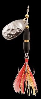 Вращающаяся блесна с одним лепестком. Вес - 5г, цвет лепестка блесны - "серебро", цвет тела блесны - "черный". Блесна оснащается тройником №6 с "мушкой". None