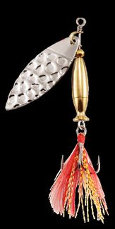 Вращающаяся блесна с одним лепестком. Вес - 5,5г, цвет лепестка блесны - "серебро", цвет тела блесны - "золото". Блесна оснащается тройником №6 с "мушкой". None