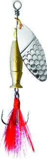Вращающаяся блесна с одним лепестком. Вес - 14,5г, цвет лепестка блесны - "серебро", цвет тела блесны - "золото". Блесна оснащается тройником №1 с "мушкой". None