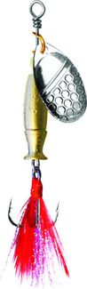 Вращающаяся блесна с одним лепестком. Вес - 7,5г, цвет лепестка блесны - "серебро", цвет тела блесны - "золото". Блесна оснащается тройником №4 с "мушкой". None
