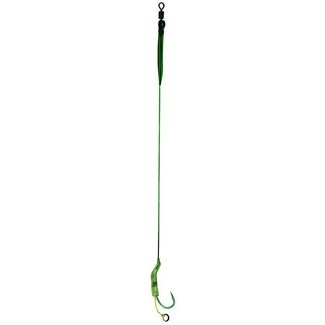 Разновидность классического карпового монтажа, позволяющая на своей основе быстро создавать широкий спектр как плавающих, так и донных оснасток. Поводок состоит из плетеной лески, покрытой ПВХ защитой, мощного карпового вертлюга, направляющей трубочки, позиционера крючка, самого крючка № 4 и крепежного кольца для приманки. None