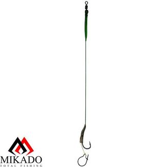 Карповый монтаж от Mikado, для ловли на пучок личинок, таких как опарыш и кастеры. Состоит из плетеной лески, покрытой ПВХ пленкой, мощного карпового вертлюга, направляющей трубочки, позиционера крючка, самого крючка № 8 и специального крепления для приманки. Кольцевидное крепление из тонкой проволоки позволяет формировать значительную по объему приманку, при этом оставляя опарыша живым длительное время. None