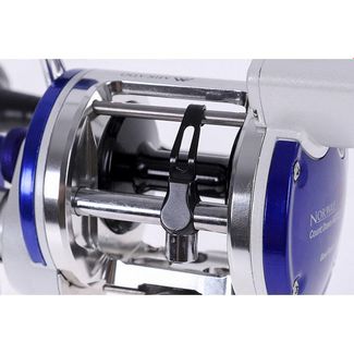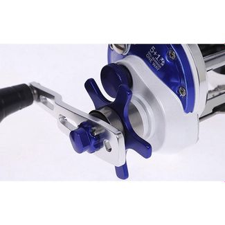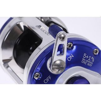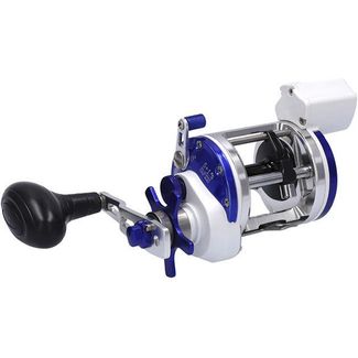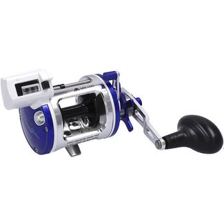 Троллинговый рыболовный мультипликатор со счетчиком лески ( в футах). Предназначен для ловли в реках и прибрежной морской ловли. Катушка под правую руку. Корпус выточен из алюминиевой заготовки, шпуля так же алюминиевая. Передаточное число 5,1:1 очень удобно, т.к. позволяет и быстро выматывать оснастку и сохранить приемлемую мощность катушки. Фрикционный тормоз с управлением звездочкой. Есть настраиваемый механический подтормаживатель шпули, используемый при стравливании оснастки. Флажок – переключатель антиреверса с автоматическим включением (при повороте рукояти). Рукоять с двумя положениями по прилагаемому усилию (для регулировки нужен инструмент), с ухватистой не скользящей ручкой. Металлическая ножка – крепление к удилищу. None