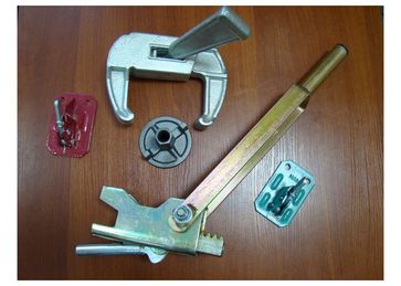 Комплектующие для опалубки в ассортименте: зажим пружинный, гайка стяжного винта, клиновой замок, ключ для зажима пружинного