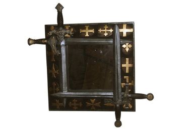 РС-4129 Зеркало в рамеМатериал: полистоун, высота 720мм, ширина 500ммСредневековый интерьер гармонично сочетается с современными направлениями. Наличие отдельных предметов в рыцарском стиле сделают Ваш дом замком короля. Широкая представленность рыцарской атрибутики удовлетворит любые запросы и любителя , и None