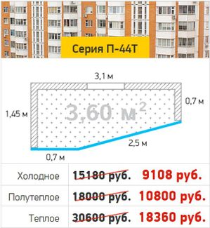 - Остекление Лоджии под ключ. Дом серии П-44Т по выгодной цене 9 108 р. руб.;