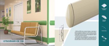 Отбойник усиленный (толщина 3мм), цельно пластиковый с гладкой поверхностью CR-190имеет полукруглую форму, который предлагает хорошую альтернативу традиционным прямоугольным отбойникам своим дизайном. Крепление к стене на клипсу, дает экономически эффективную альтернативу для непрерывного профиля из алюминия не уступая не по каким либо показателям прочности и эксплуатационным свойствам.
