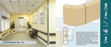 Поручень, совмещенный с отбойником усиленный (толщина 2,5 мм), цельно пластиковый с гладкой поверхностью HR-142обеспечивает не только защиту стен от движущихся предметов (каталок, тележек…), но и одновременно с этим служит поручнем, использование которого помогает передвигаться людям с ограниченными возможностями в больницах, органах социальной защиты, реабилитационных центрах...