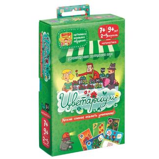 <p>Цветариум - это игра про выращивание и продажу цветов, которая будет интересна и детям, и взрослым.</p> <p>Увлекательная игровая механика и потрясающее оформление игры не оставит равнодушными ни девочек, ни мальчиков.</p> <p>В игре не только сама собой запоминается вся таблица умножения, но и наглядно осваивается решение прикладных задач с его использованием.</p> <p>В комплекте: 96 прямоугольных карт с цветами и 30 квадратных карт с покупателями, иллюстрированные правила.</p> <p>Бренд: Банда умников</p> <p>Вес: 0,30</p> <p>Инд. упаковка: коробка</p> <p>Материал: бумага, картон</p> <p>Размеры ДхВхШ: 0,04х0,12х0,18</p> <p>&nbsp;</p> Наличные, безнал., карты, эл. деньги, юр. лица Возможен самовывоз. Есть доставка.
