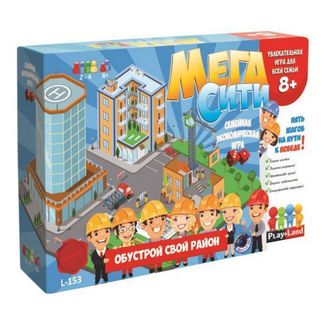 <p>&nbsp;</p> <p>Игра Мега Сити - динамичная экономическая игра для детей старше 8 лет и для взрослых.</p> <p>Обязательно присутствие ведущего.</p> <p>В игре могут участвовать от двух до четырех игроков. Интереснее всего, когда участвуют четыре игрока.</p> <p>Игра развивает бизнес стратегию, гибкость, внимание и способность быстро и правильно принимать решения для успешного бизнеса.</p> <p><strong>Цель игры</strong> - грамотно инвестировать наличными средствами в строительство, продавать квартиры, магазины и офисы.</p> <p>В игре есть специфичные правила и последовательность шагов.</p> <p>Сначала игрок должен, попадая на ХОД Участок, приобрести Участок, после чего получить Разрешение на Проект, Водоснабжение и Электроснабжение, попадая на определенные ходы: Ход Проект, Водоснабжение и Электроснабжение (в произвольной последовательности), после чего построить здание и благоустроить территорию около него.<br /><br />Бренд: PlayLand<br />Материал: картон, пластик<br />Размер: 0,07х0,34х0,26</p> <div>Комплектация:</div> <ul> <li>игровое поле;&nbsp;</li> <li>6 карт "Удача";&nbsp;</li> <li>6 карт "Проблема";&nbsp;</li> <li>6 карт "Клиент";&nbsp;</li> <li>9 карт "Благоустройство";&nbsp;</li> <li>48 карт "Свидетельства на собственность";&nbsp;</li> <li>9 карт "Договора на собственность";&nbsp;</li> <li>27 жетонов;&nbsp;</li> <li>9 стоек;&nbsp;</li> <li>9 зданий;&nbsp;</li> <li>60 банкнот;</li> <li>правила игры.</li> </ul> Наличные, безнал., карты, эл. деньги, юр. лица Возможен самовывоз. Есть доставка.