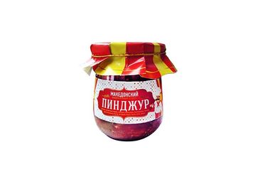 ПИНДЖУР СПЕЛО-ЗРЕЛО– аппетитное овощное блюдо, приготовленное по особому македонскому рецепту из свежих баклажанов и сочных томатов, обжаренных на медленном огне с добавлением особого сочетания специй.