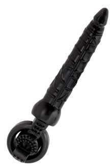 Эта насадка на пенис уникальна! Она не только усиливает эрекцию, обжимая основание пениса мужчины и безостановочно вибрируя. <br><br> Она еще позволяет стимулировать анус сексуальной партнерши! Введите свой пенис ей в лоно, а гибкий стимулятор, также выполненный в форме члена с рельефом, в попку! <br><br> Двойное проникновение и восхитительную эрекцию девушка точно оценит по достоинству! Длина фаллоса - 16 см.<br> Минимальный диаметр - 1,7 см. None