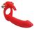 Красная вибронасадка Double Penetration Real с клиторальным зайчиком (244728)