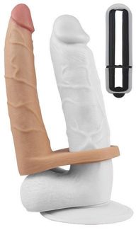 Удвойте удовольствие с помощью реалистичной насадки на пенис! Теперь вместе с насадкой для двойного проникновения, которая к тому же оснащена 10 функциями вибрации, вы оба сможете наслаждаться сексуальными забавами, не заботясь о необходимости третьего игрока! <br><br> Эта модель выполнена из мягкого и упругого материала, напоминающим мужской пенис с яркой головкой и прорисованными венками. Она гармонично сочетает в себе эрекционное кольцо чтобы существенно продолжить время интимной близости, также оно обеспечит мягкое и плотное сжатие основания пениса, что позволит усилить эрекцию и повысить выносливость. <br><br> Вибропуля вставляется в специальную полость в насадке и будет нежно стимулировать анальную зону или область клитора, приближая пик наслаждения! Рабочая длина - 15 см.<br> Минимальный диаметр - 2,2 см. None