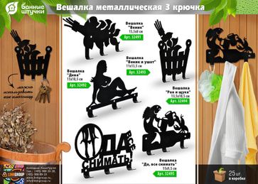 - Вешалка Банные Штучки Рак и щука металлическая 3 крючка 32494 в каталоге Печи для саун и бань в Москве;