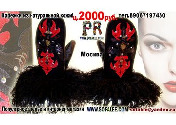 Закажите Меховые Варежки-Рукавички кожаные женские с вышивкой и со стразами,мехом ламы "Антуанетта",лучший подарок на новый год. у компании Sofalee в Москве, ЗАО на портале Alloy: