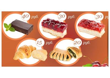 - Кондитерские изделия по выгодной цене 10 р. руб.;
