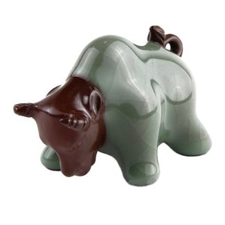 Игрушка для чайной церемонии "Бык", зеленая покрытая изумрудной глазурью. None