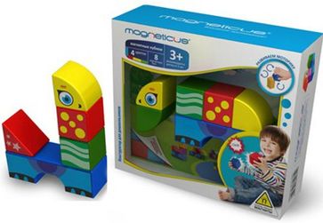 Для детей от 2 лет. Магнитные кубики представляют собой набор из 8 элементов - из серии "Очень умные магниты". Магнитные кубики Magneticus, являются уникальной разработкой, которым нет аналогов не только в России, но и в мире. Предлагаем вашему вниманию новую разработку компании MAGNETICUS (Магнетикус) «Кубики-животные». Развивающий конструктор предназначен для малышей от 3 лет. В комплект входят разноцветные кубики из нетоксичного пластика (8 шт.). Внутри каждой детали находится магнит, поэтому кубики надежно крепятся друг к другу. Дизайн самого изделия и его упаковки выполнен очень профессионально — коробки с конструктором будут привлекать внимание покупателей. А невысокая цена делает эту игрушку доступной широкому кругу потребителей. Основная проблема строительства любых сооружений из кубиков - их непрочность, одно неловкое движение и созданная с таким трудом, старанием и любовью композиция рушится, а ребенок расстраивается. Благодаря магнитным граням, магнитные кубики Magneticus, лишены таких недостатков, с их помощью можно создавать крепкие конструкции, а также, создавать сооружения, пренебрегая законом тяготения. Кроме того, кубики являются прекрасным обучающим пособием с помощью которого можно изучать геометрические фигуры, базовые цвета, развивать фантазию, прос