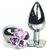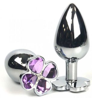 Серебристая анальная пробка Vander с сиреневым кристаллом-клевером. Рабочая длина - 7,6 см. None