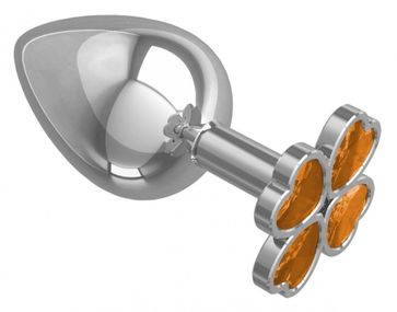 Серебристая анальная пробка-клевер с оранжевым кристаллом - 9,5 см. (119445)