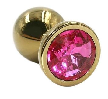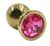 Золотистая алюминиевая анальная пробка с ярко-розовым кристаллом - 6 см. (87561)