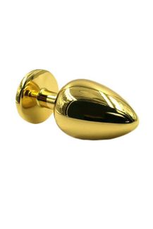 Золотая анальная пробка из алюминия размер S. Страз в основании круглой формы, выполнен из стекла. Упакована в вельветовый мешочек для хранения. Вес - 52 гр. None