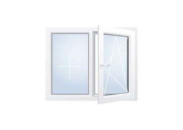 Двухстворчатое пластиковое окно с глухой и поворотно откидной створками