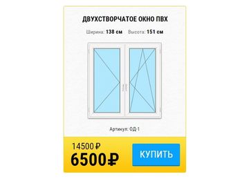 - Двустворчатое пластиковое окно по выгодной цене 6 500 р. руб.;