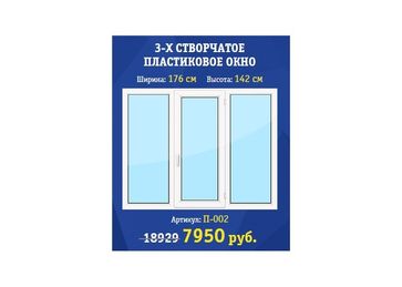 - Трехстворчатое окно по выгодной цене 7 950 р. руб.;