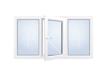Трехстворчатое пластиковое окно пвх с двумя глухими и одной поворотной створками