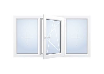 Трехстворчатое пластиковое окно с двумя глухими и одной поворотно откидной створками