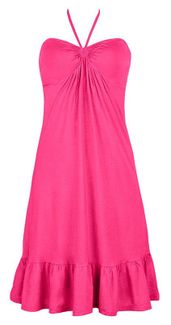 Пляжное платье из вискозы, свободного кроя, низ платья украшает волан, бретель вокруг шеи. None