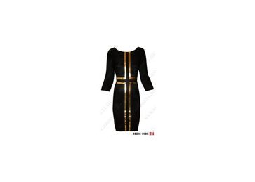 Черное облегающее платьеиз плотной ткани с эластаном, на подкладке, спереди золотая отделка, рукав 3/4, потайная молния на спине.