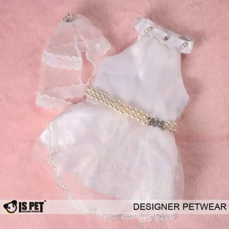 Подарочная упаковка. Шикарное свадебное платье, которое также подойдет и для вечеринок. Платье выполнено из органзы и декорировано нежными кружевными оборками. На талии необыкновенно красивый пойс из двух жемчужных нитей. Легко одевается с помощью липучек на груди, без рукавов. Материал: полиэстер. None