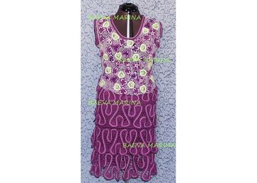 Костюм выполнен крючком из хлопковой пряжи отечественного производства.