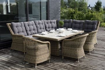 Центральный модуль Бергамо изготовлен из круглого искусственного ротанга серо-желтого оттенка Достоинства данной модели: