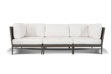 Трехместный диван Касабланка состоит из модулей. Выполнен в технике ручного плетения из синтетических шнуров. Может быть размещен как на улице, так и в помещении. Достоинства данной модели: